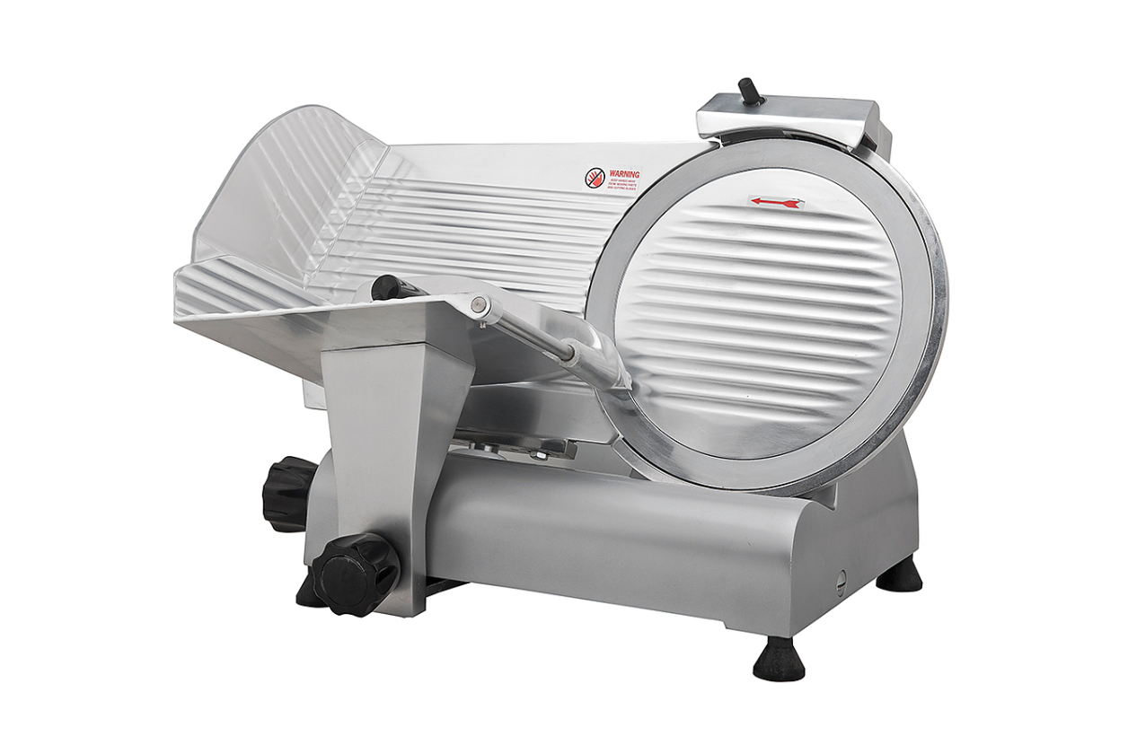 Слайсер VIATTO VA-MS300ST предназначен для нарезки тонкими одинаковыми ломтиками приготовленного мяса, колбасных изделий, сыра и овощей на предприятиях общественного питания и торговли. Модель оснащена фиксированным затачивающим устройством.
