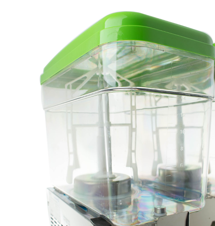 Сокоохладитель Foodatlas JA 18-2 используется на предприятиях общественного питания и торговли для хранения в охлажденном состоянии и последующей дозированной подачи различных напитков из фруктов, молока и морсов. Есть возможность регулировать температуру напитков. Корпус выполнен из нержавеющей стали 430, контейнеры - из поликарбоната.