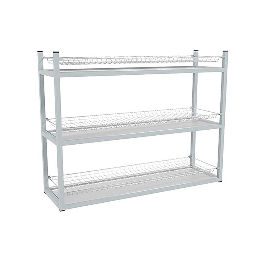Стеллаж Пищевые Технологии Эконом СКСК-3КЭ предназначен для хранения стаканов на предприятиях общественного питания и торговли. Каркас выполнен из трубы, покрытой порошковой краской, сетки - из хромированной стали.