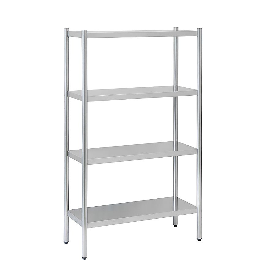 Стеллаж кухонный ATESY СТК-П-900.400.1600-02 (СТКН-900/400-П) серии «Престиж» предназначен для использования на предприятиях общественного питания в моечных отделениях, складских помещениях и в холодильных камерах для хранения посуды, кухонного инвентаря и упакованных пищевых продуктов. Полки изготовлены из нержавеющей стали AISI 430. Стойки - круглая труба из нержавеющей стали AISI 201.