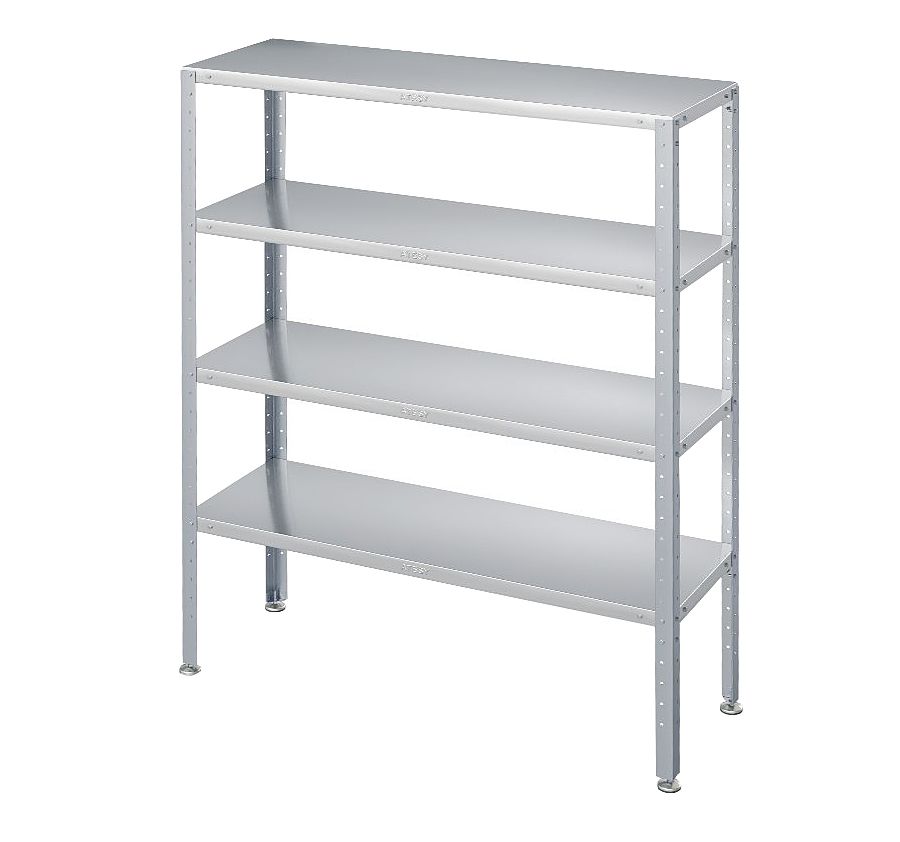 Кухонный стеллаж ATESY СТК-С-1200.600.1800-02-Н серии Стандарт предназначен для хранения посуды, различного инвентаря и сухих продуктов на предприятиях общественного питания и торговли. Сплошные полки выполнены из нержавеющей стали AISI 430 толщиной 0,8 мм, каркас - из оцинкованной стали толщиной 1,2 мм, ножки - из нержавеющей стали, опора ножек - из пластика.