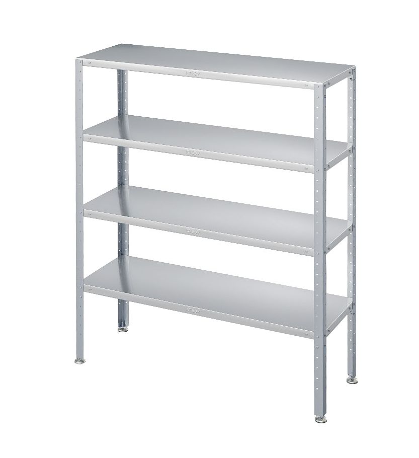 Кухонный стеллаж ATESY СТК-С- 700.400.1800-02 серии Стандарт предназначен для хранения посуды, различного инвентаря и сухих продуктов на предприятиях общественного питания и торговли. Модель оснащена 4 полками и 4 стойками. Сплошные полки выполнены из пищевой нержавеющей стали AISI 430 толщиной 0,8 мм, каркас - из оцинкованной стали толщиной 1,2 мм, опора ножек - из пластика.