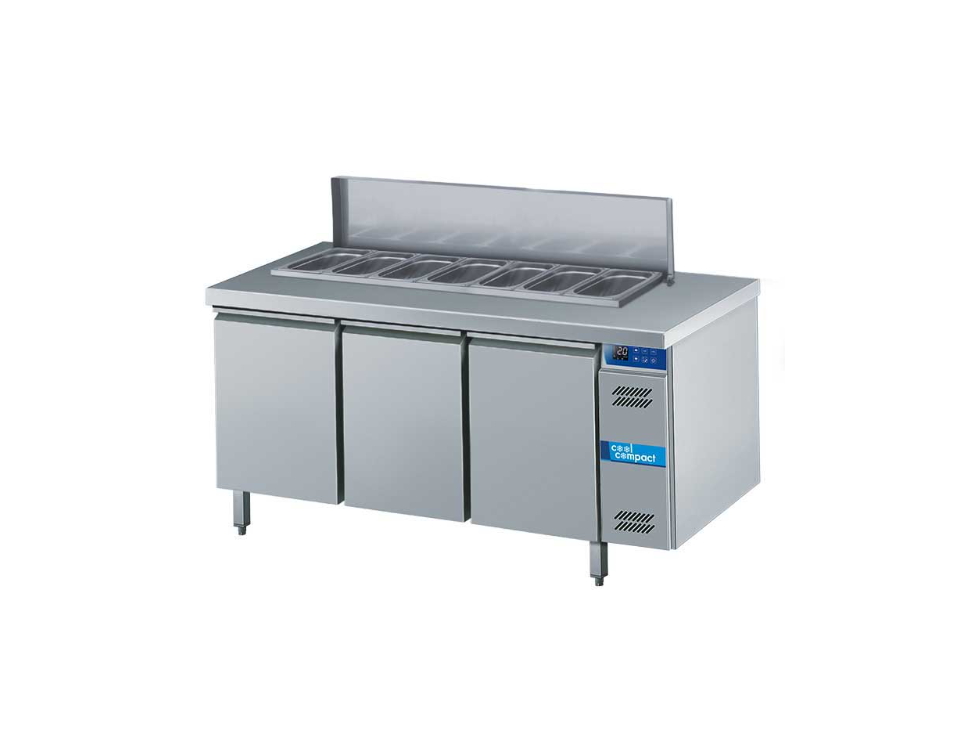 Стол производственный KBO731162 3 двери 3 x GN1/1 COOL COMPACT со столешницей со всех сторон, представляет собой эффективное решение для охлаждения и подачи продуктов на профессиональных кухнях. Оснащенный насадкой CNS на 7 x GN 1/3 (по длине) и удобной откидной крышкой, эта станция приема идеально подходит для использования в сфере общественного питания.