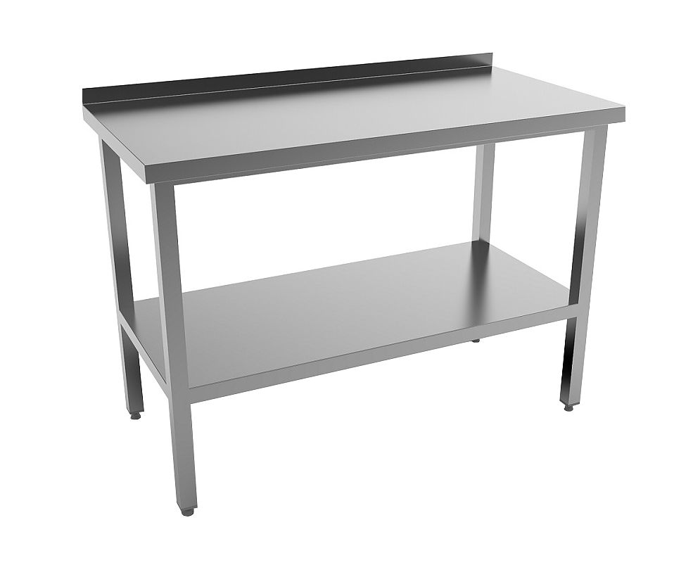 Стол разделочный с бортом 1000х600х870 мм сварной, полка сплошная, нержавейка MGSTEEL предназначен для разделки продуктов, резки и формовки полуфабрикатов, первоначальной обработки овощной продукции, завешивания, порционирования и подготовки к подаче готовых блюд, а также сбора пищевых остатков. При необходимости на него может устанавливаться тепловое, электромеханическое и весовое оборудование. В процессе работы используется для временного хранения инвентаря, посуды и продуктов. Изделие выполнено из нержавеющей стали AISI 430, отличающейся прочностью, долговечностью и устойчивостью к коррозии, регулируемые опоры - из ударопрочного пластика.