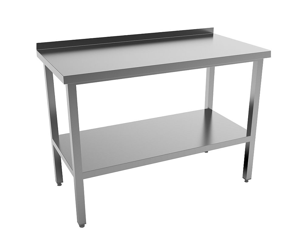 Стол разделочный с бортом 1000х700х870 мм сварной, полка сплошная, нержавейка MGSTEEL предназначен для разделки продуктов, резки и формовки полуфабрикатов, первоначальной обработки овощной продукции, завешивания, порционирования и подготовки к подаче готовых блюд, а также сбора пищевых остатков. При необходимости на него может устанавливаться тепловое, электромеханическое и весовое оборудование. В процессе работы используется для временного хранения инвентаря, посуды и продуктов. Изделие выполнено из нержавеющей стали AISI 430, отличающейся прочностью, долговечностью и устойчивостью к коррозии, регулируемые опоры - из ударопрочного пластика.