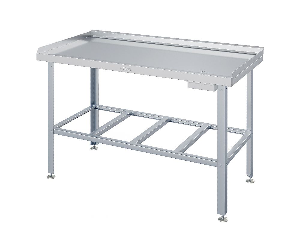 Стол специализированный мясной ATESY СМ-С-1200.600-02 предназначен для разделки и последующей обработки мяса и полуфабрикатов. Под столешницей имеется нержавеющий лоток для сбора жидкости. Сток жидкости в лоток осуществляется через отверстие в столешнице. Столешница стола изготовлена из пищевой нержавеющей стали. Каркас стола, состоящий из гнутых профилей изготовлен из оцинкованной стали.