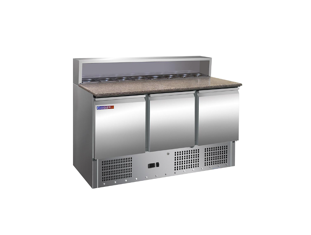 Стол для пиццы COOLEQ PS903 используется на предприятиях общественного питания для хранения пиццы, салатов, сэндвичей и других блюд и ингредиентов к ним в охлажденном состоянии. Модель оснащена широкой столешницей, которая предоставляет достаточно пространства для приготовления блюд, полкой и парой направляющих в каждой секции. Корпус выполнен из нержавеющей стали.
