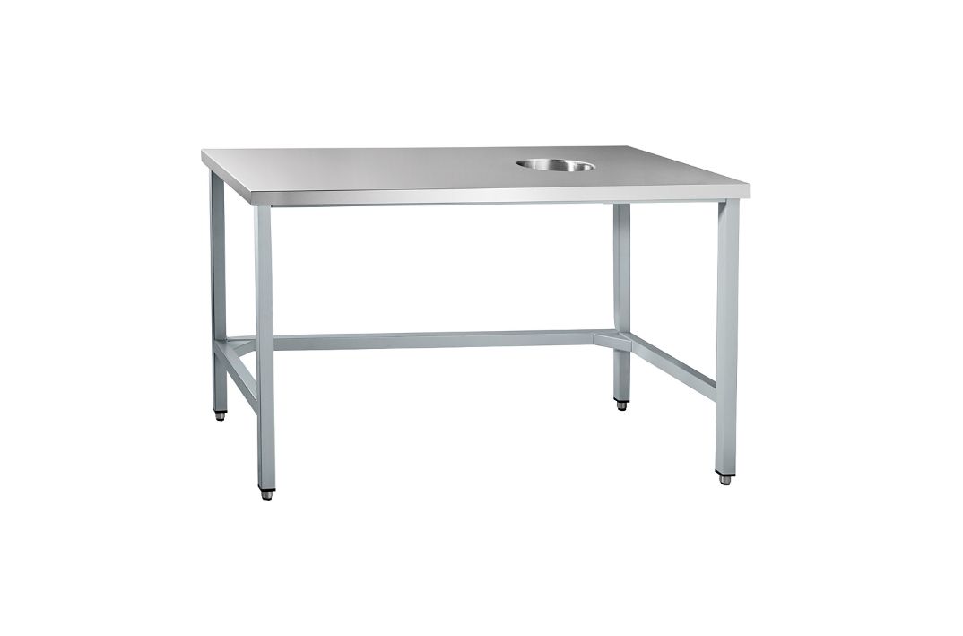 Стол производственный ССО-1 ABAT предназначен для обработки ингредиентов для приготовления блюд и для сбора пищевых отходов на предприятиях общественного питания и торговли. Модель оснащена регулируемыми по высоте ножками. Конструкция разборная, столешница выполнена из высококачественной нержавеющей стали с усилением из влагонепроницаемой фанеры толщиной 12 мм, каркас - из квадратной трубы, покрытой порошковой краской.