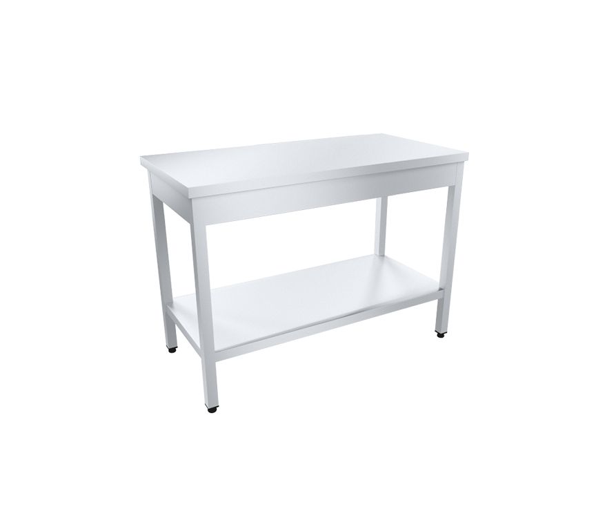 Стол разделочный ПРОФИ НТ СРО-12/6ПНТ-М 1200х600 мм, полка сплошная нержавеющая. Столешница изготавливается из нержавеющей стали марки AISI 430 или марки AISI 304 толщиной 0,8 мм и дополнительно усиливается ЛДСП (ламинированным листом древесно-стружечной плиты) толщиной не менее 16 мм. Каркас имеет усиленную конструкцию, изготавливается из нержавеющей трубы квадратного сечения 40х40 мм. Столы оснащаются сплошными полками из нержавеющей стали. Ножки оснащаются винтовыми опорами, позволяющими регулировать высоту стола от 850 до 870 мм. Изделие поставляется в разобранном виде.