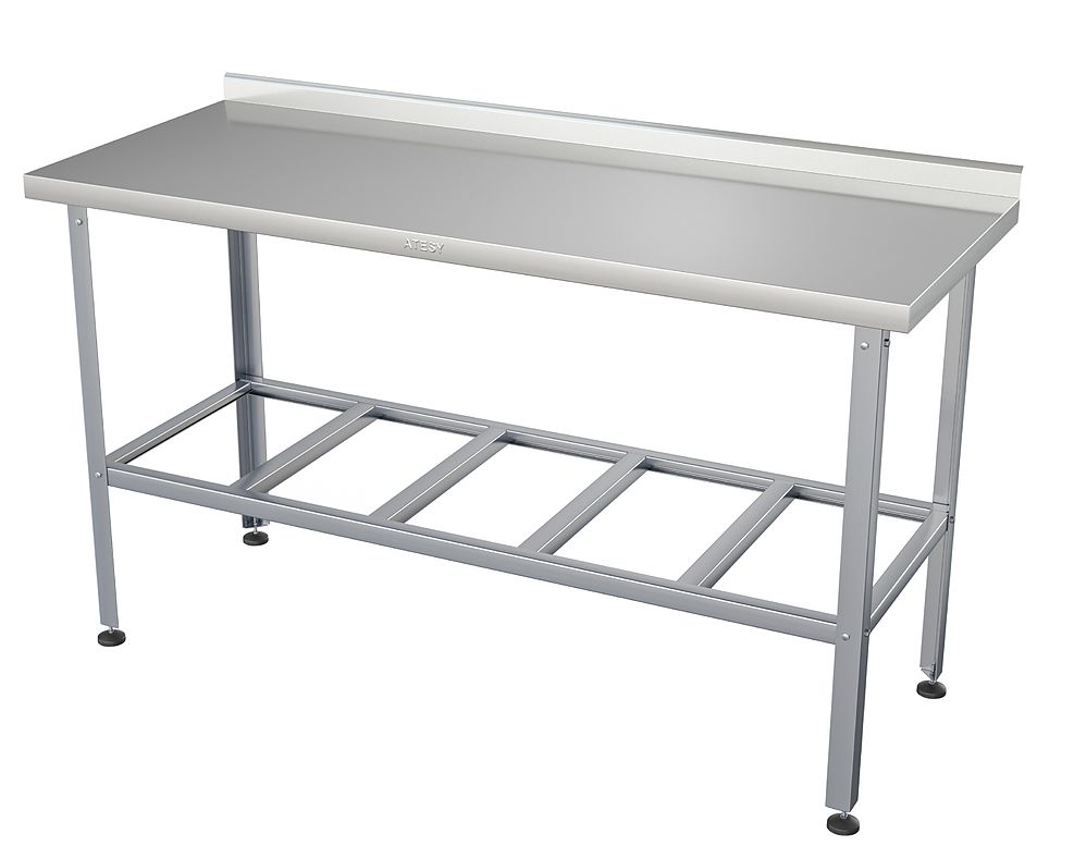 Производственный стол ATESY СР-С-1-1200.600-02-Н серии Стандарт используется на предприятиях общественного питания и торговли для разделывания и обработки пищевых продуктов, а также в качестве вспомогательной поверхности для кухонного оборудования. Модель оснащена бортом. Каркас и столешница выполнены из нержавеющей стали AISI 430 толщиной 0,8 мм, столешница дополнительно укреплена листом ламинированной древесностружечной плиты с внутренней стороны.