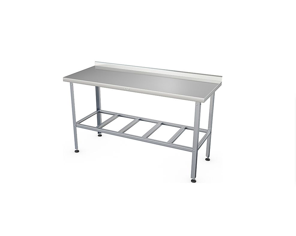 Стол разделочный ATESY СР-С-1-1500.800-02-Н широко применяется в различных производственных цехах предприятий общественного питания, супермаркетах, комбинатах пищевой промышленности для разделывания и обработки пищевых продуктов, а также в качестве вспомогательной поверхности для кухонного оборудования. Полка-решётка и столешница выполнены из нержавеющей стали AISI 430 толщиной 0,8 мм, каркас - из трубы диаметром 40 мм из нержавеющей стали AISI 201, ножки - из нержавеющей стали, опора ножек - из пластика.