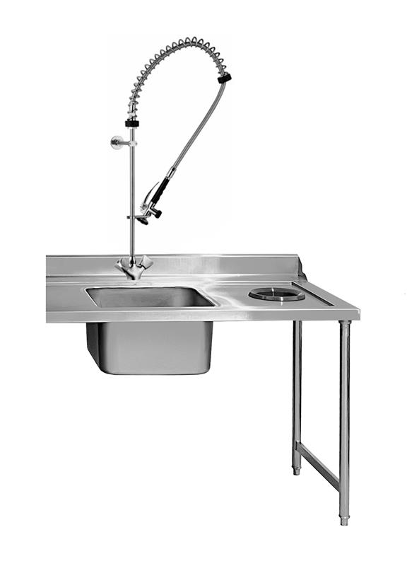 Стол с мойкой и сбросом отходов (правый) HTC48R KOCATEQ используется на предприятиях общественного питания и торговли для установки с правой стороны посудомоечной машины, предварительного очистки посуды от остатков пищи. Корпус выполнен из нержавеющей стали AISI 304.