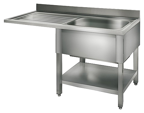 Стол с мойкой STR127SBR1 (правый) KOCATEQ используется на предприятиях общественного питания и торговли для установки с правой стороны посудомоечной машины, предварительного ополаскивания посуды. Каркас, столешница и нижняя полка выполнены из нержавеющей стали толщиной 1,5 мм, ножки из трубы квадратного сечения 40x40 мм, пятки из нескользящего пластика.