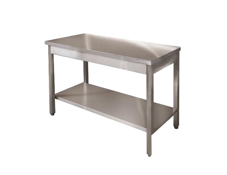 Стол центральный Сц-211/407 ITERMA с полкой выполнен полностью из нержавеющей стали. Столешница усилена двойной ламинированной ДСП. Жесткость полки обеспечивается ребром.