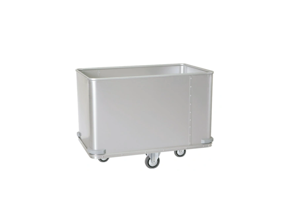 Тележка для белья CD-200FM DANUBE предназначена для временного хранения и транспортировки сухого/влажного, грязного и чистого белья на предприятиях общественного питания, в медицинских, образовательных и спортивных учреждениях, а также в отелях и гостиницах. Представляет собой белый контейнер из анодированного алюминия с резиновыми бамперами. Имеет два поворотных и два фиксированных колеса.