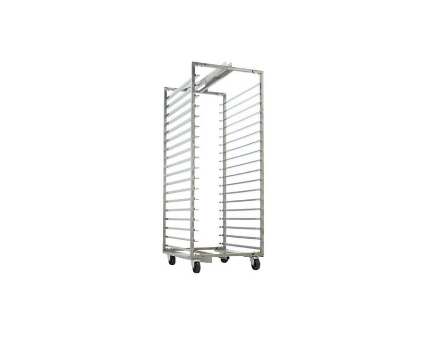 Тележка-шпилька для ротационной печи с платформой ROTOR 68 18 П BASSANINA используется совместно для размещения и загрузки тестовых заготовок. Аксессуар поставляется в разборном виде. Конструкция выполнена из трубчатого профиля 25х25 мм из нержавеющей стали AISI 304, поворотные колеса с двойным комплектом шариков - из термостойкого полимера, с втулкой из нержавеющей стали и муфтой из тефлона.