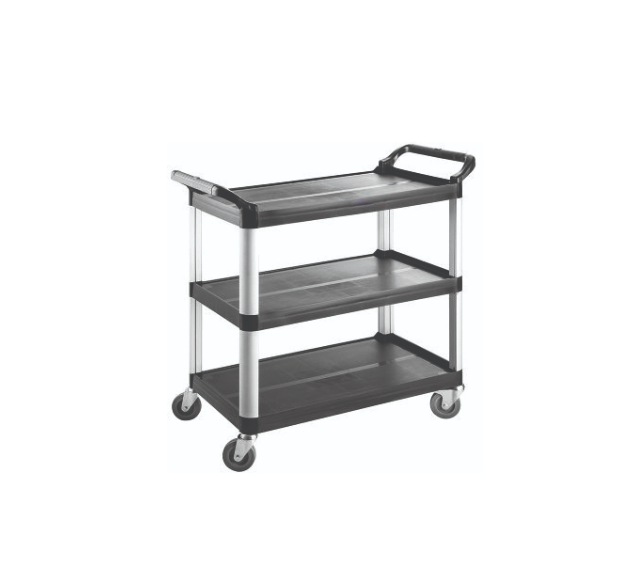 Сервировочная тележка Empero EMP.PSV.03 используется на предприятиях общественного питания для перемещения готовых блюд, напитков и посуды в зал приема пищи, а также для подачи грязной посуды из зала в моечное отделение. Модель оснащена 3-мя вместительными полками и 4-мя подвижными колесами. Стойки выполнены из алюминия, полки - из ударопрочного пластика.