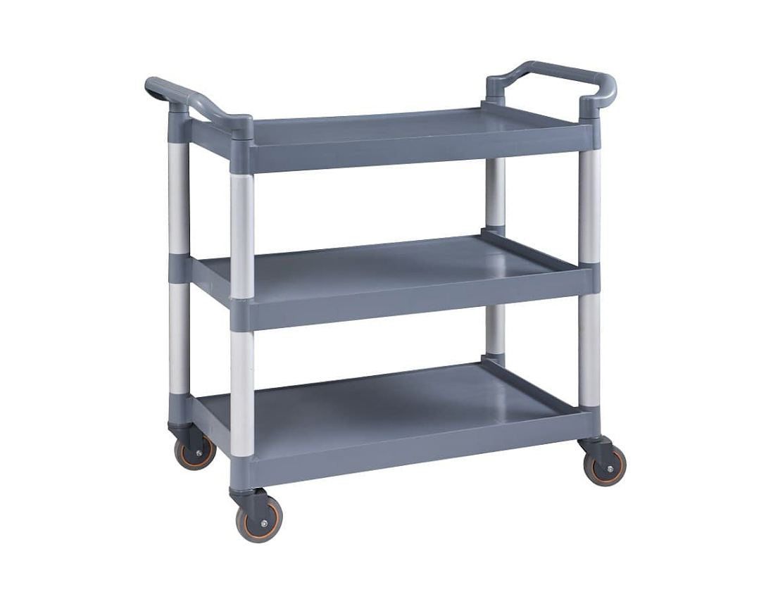 Тележка VIATTO PST03B используется на предприятиях общественного питания для перемещения готовых блюд, напитков и посуды в зал приема пищи, а также для подачи грязной посуды из зала в моечное отделение. Оснащена 3-мя полками. Тележка выполнена из пластика.