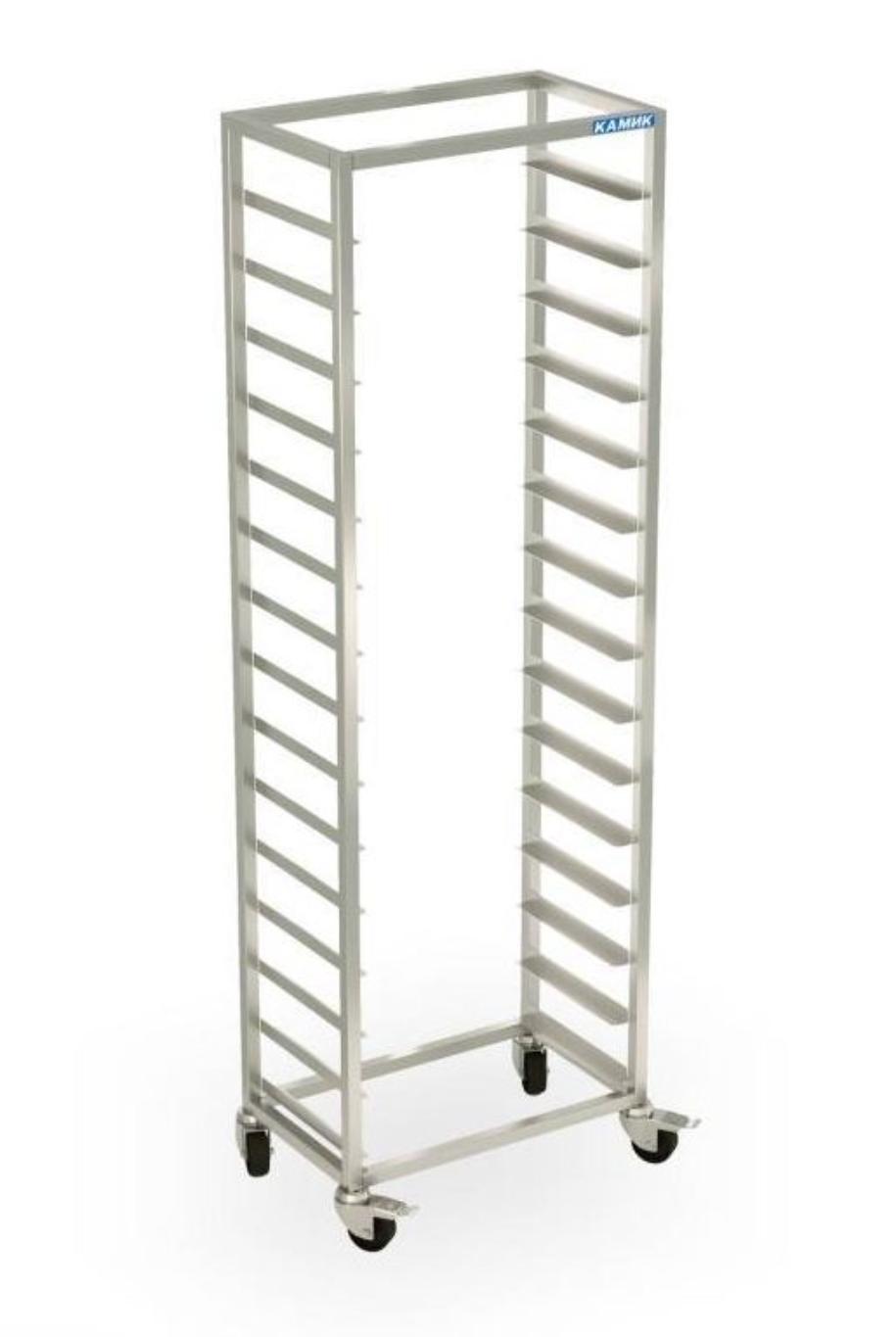 Тележка-шпилька Шп-23106 КАМИК предназначена для временного хранения и транспортировки гастроемкостей и противней с полуфабрикатами и готовой продукцией в столовых, барах, ресторанах и на других предприятиях общественного питания и торговли. Тележка оснащена 4-мя маневренными поворотными роликами. Корпус и направляющие выполнены из профиля высококачественной нержавеющей стали AISI 430.