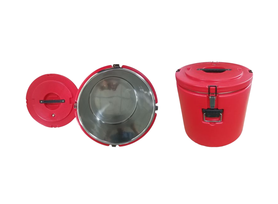 Термос профессиональный 30 л, красный MACO (251402). Используется на предприятиях общественного питания и торговли для поддержания в течение длительного времени готовых блюд и напитков в разогретом виде и их доставки до индивидуального пользователя в офисы, школы, учреждения, на предприятия общественного питания и фабрики-кухни. Модель оснащена эргономичными ручками. Внутренние стенки выполнены из нержавеющей стали SS 304, вешние стенки - из пластика.