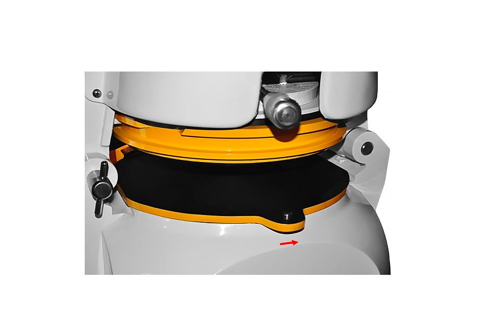 - Специальный винт на крышке, позволяющий регулировать объем рабочей камеры и настраивать машину для работы с тестовыми заготовками различной массы, тем самым предотвращая недостаточное округление заготовки при работе с массами разного объема