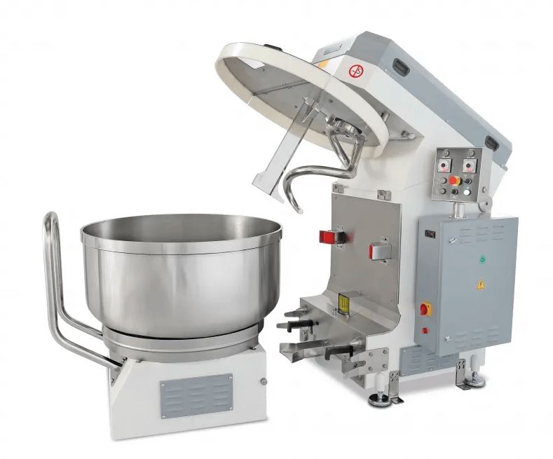 Автоматическая спиральная тестомесильная машина для замеса теста с откатной дежой замесит тесто в самые кратчайшие сроки. Особая форма спирали позволяет замешивать даже небольшое количество теста. Замес происходит без разрывов, напряжения и стресса для теста. Одним из самых важных технических характеристик этого тестомеса — откатная дежа. Эта спецификация позволяет использовать дополнительную дежу.