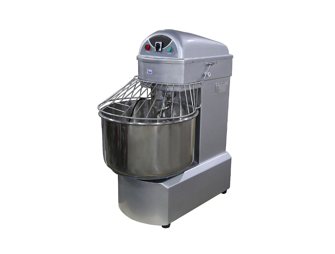 За счет одновременного вращения месильного органа и дежи, повышается скорость и эффективность перемешивания теста. Корпус тестомеса изготовлен из окрашенного металла, все металлические детали имеющие контакт с продуктами выполнены из нержавеющей стали.