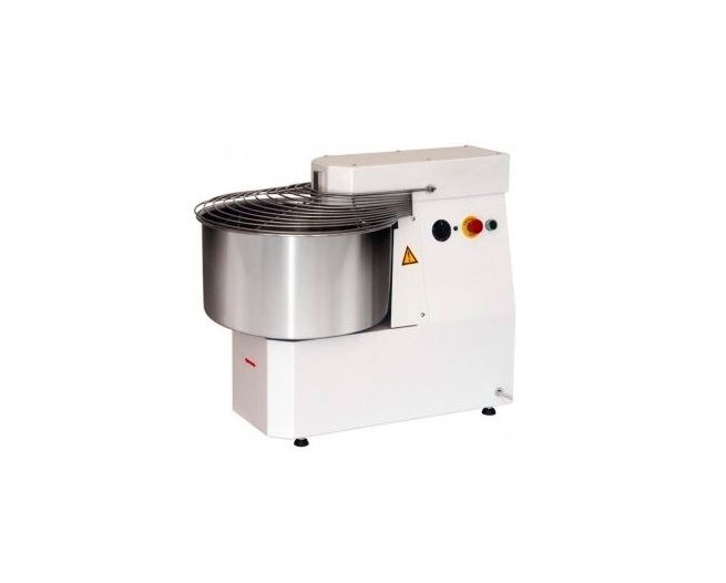 Спиральный тестомес MEC SK-40 предназначен для замешивания теста с различной основой и консистенцией для выпечки хлебобулочных или кондитерских изделий на предприятиях общественного питания и торговли. Корпус выполнен из нержавеющей стали, окрашенной в белый цвет, дежа, спираль, тестовзбиватель и крышка - из нержавеющей стали AISI 304.