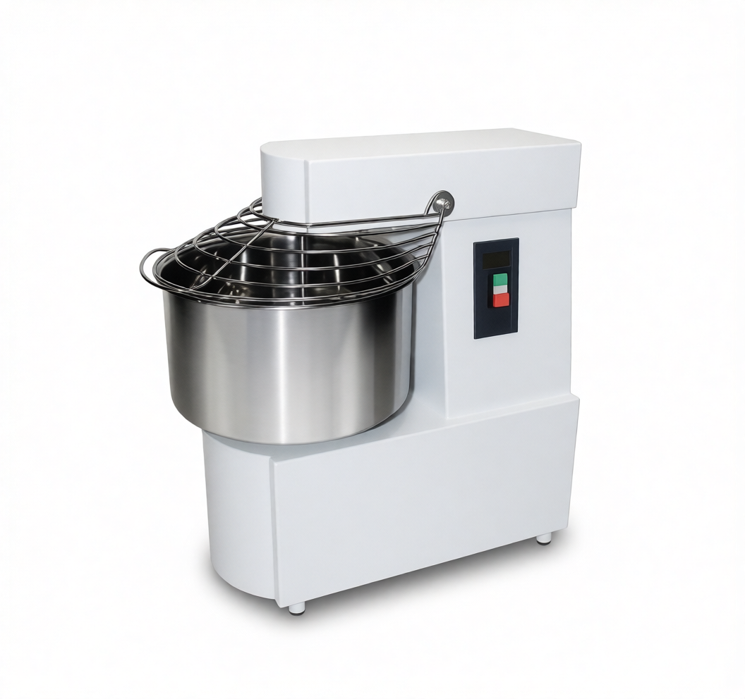 Спиральный тестомес MEC SK-60-2S предназначен для замешивания теста с различной основой и консистенцией для выпечки хлебобулочных или кондитерских изделий на предприятиях общественного питания. Корпус из нержавеющей стали, окрашенной в белый цвет, дежа, спираль, тестовзбиватель и крышка - из нержавеющей стали AISI 304.