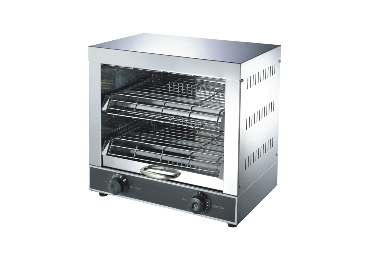 Тостер VIATTO VA-TS-02 предназначен для подогрева и поджарки кусочков хлеба в кафе, ресторанах и на предприятиях общественного питания и торговли. Модель оснащена кварцевыми нагревательными трубками с защитными решетками и механической панелью управления. Корпус выполнен из нержавеющей стали, решетки - из железа с никелированным покрытием.