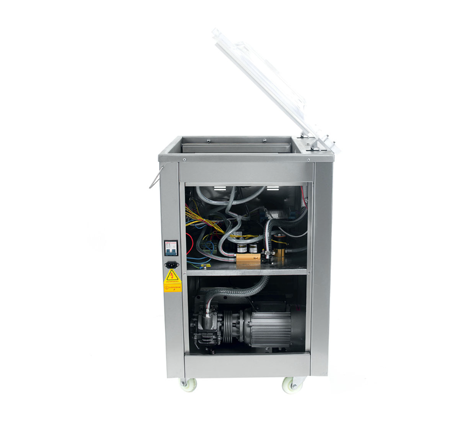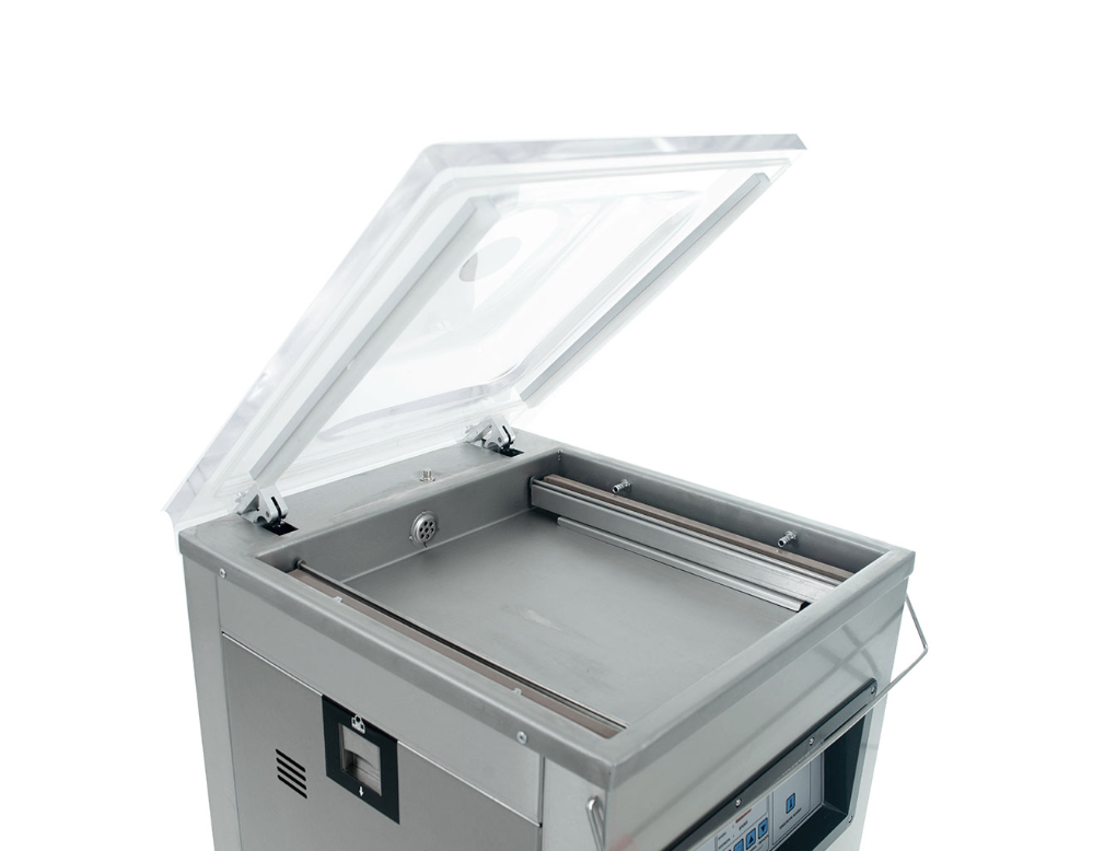 - Машина проста в управлении. Весь рабочий процесс, который включает опускание вакуумной крышки, вакуумирование, наполнение инертным газом (если есть), запайку, печать даты, охлаждение, наполнение камеры воздухом и поднятие крышки вакуумной камеры, завершается автоматически