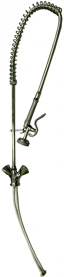 Устройство душирующее 9077012ECO (без лейки) KOCATEQ предназначено для разбора и предварительного ополаскивания посуды перед ее загрузкой в посудомоечную машину на предприятиях общественного питания. Корпус и вертикальная стойка выполнены из полированной нержавеющей стали AISI 304, трубка, подводящая воду - из гибкого EPDM пластика (Arkema) и армирована двойной сеткой из нержавеющей стали, остальные элементы - из литьевой латуни с хромированным покрытием. Лейка в комплект поставки не входит.
