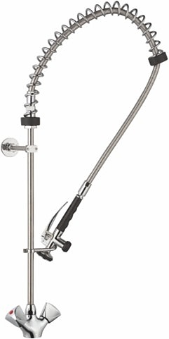 Устройство душирующее без носика 9077012M KOCATEQ устанавливается на моечную ванну или на стол-мойку для разбора и предварительного ополаскивания посуды перед ее загрузкой в посудомоечную машину. Корпус изделия и вертикальная стойка выполнены из полированной нержавеющей стали.