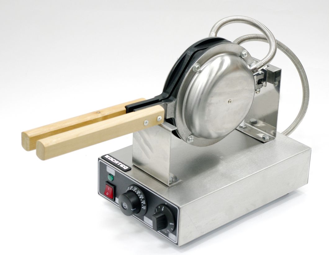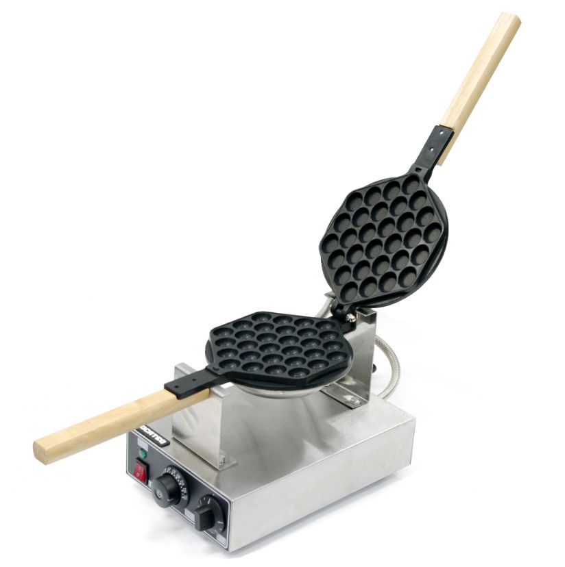 Вафельница для гонконгских вафель GH15HKNW KOCATEQ используется на предприятиях общественного питания и торговли, в пекарнях и кондитерских для выпечки гонконгских вафель (пузырчатой формы). Вафельница оснащена механической панелью управления, таймером до 5 минут и термостатом для регулировки температуры. Рабочая поверхность выполнена из алюминия с антипригарным покрытием, корпус из нержавеющей стали AISI 430, ножки из пластика.