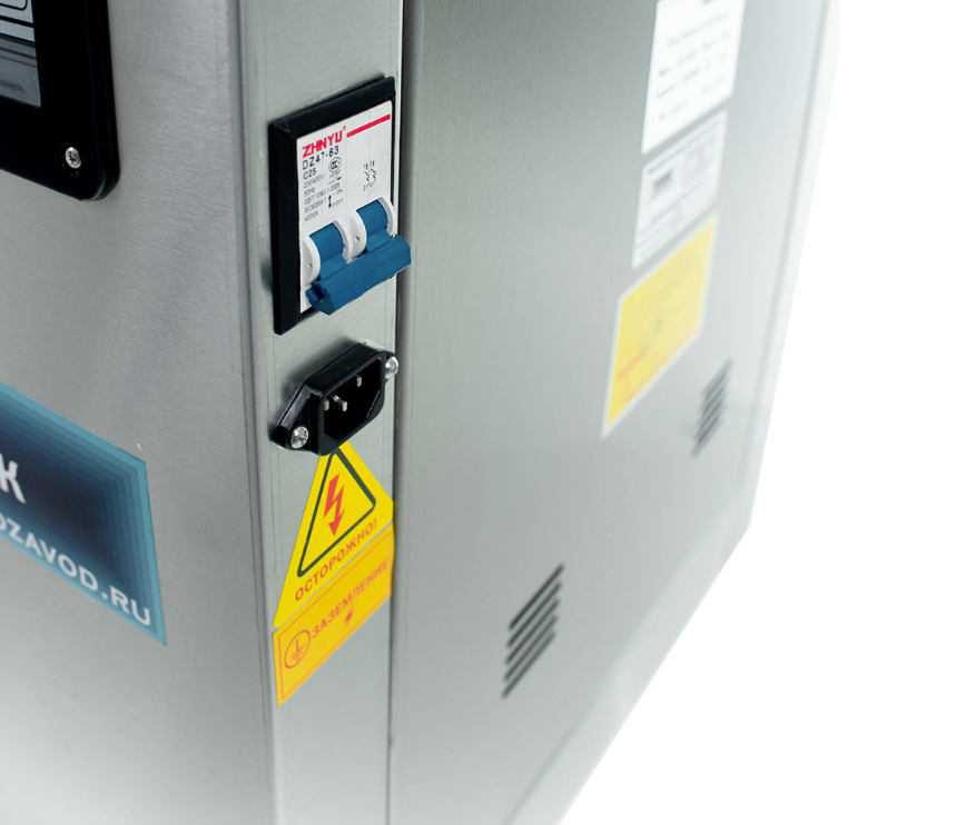 - На панели управления находится кнопка аварийного выключения оборудования. Если в процессе работы произойдет неполадка, нажатие кнопки СТОП остановит рабочий процесс