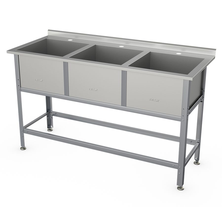 Ванна моечная трехсекционная ATESY ВСМ-Б-3.430-1-02 (с бортом) предназначена для использования в моечном отделении на предприятиях общественного питания, для мытья, дезинфекции и ополаскивания использованной посуды.