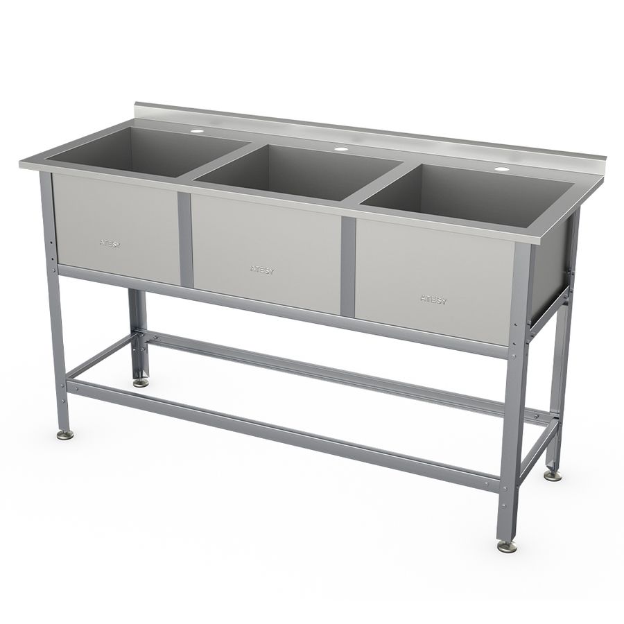 Ванна моечная АТЕСИ ВСМ-Б-3.530-1-02 серии «Бюджет» предназначена для использования на предприятиях общественного питания для мытья столовой и кухонной посуды, инвентаря, овощей, фруктов, для оттайки замороженных пищевых продуктов.