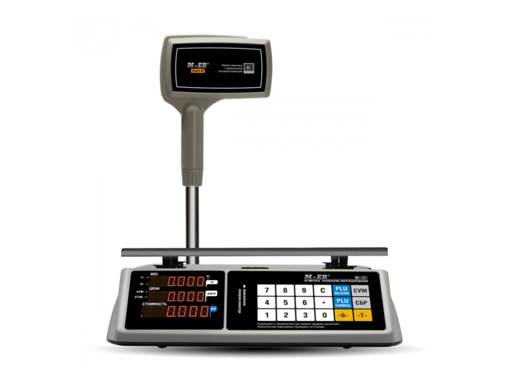 Весы настольные M-ER 328 ACPX-32.5 "TOUCH-M" LED MERTECH используются на предприятиях общественного питания и торговли для взвешивания и фасовки товаров. Спереди на корпусе для продавца предусмотрены промышленная сенсорная клавиатура и LЕD-дисплей, который отображает вес, цену, стоимость товара. Для покупателя на задней стороне корпуса эти данные дублируются на втором дисплее.