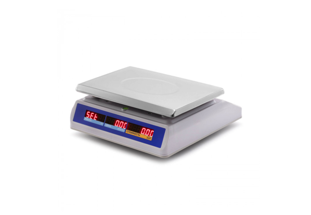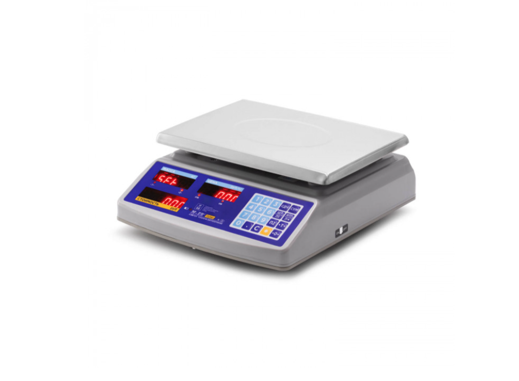 - Результаты выводятся на два LCD-дисплея, расположенных на противоположных сторонах весов, итоговые цифры хорошо видны и продавцу, и клиентам