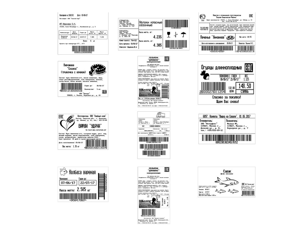 - Этикетки на весовые и штучные товары