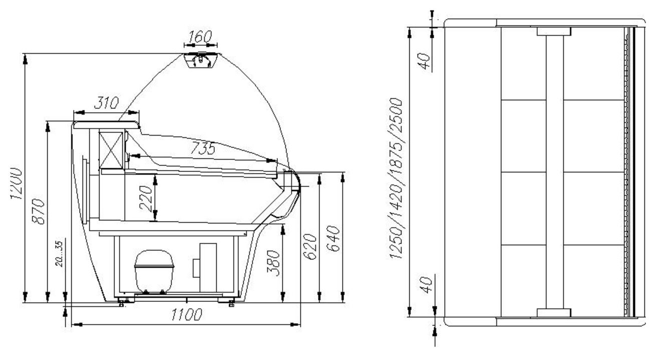 Длина без боковин: 1250 мм