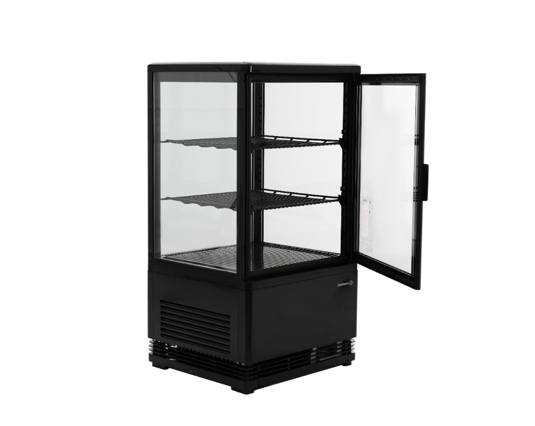 Витрина холодильная RT-58L (черная) FOODATLAS предназначена для демонстрации, охлаждения и кратковременного хранения продуктов и напитков на предприятиях общественного питания и торговли. Витрина оснащена распашной дверцей. Корпус выполнен из окрашенного металла с 4-х сторонним остеклением.