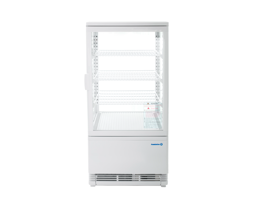 Витрина холодильная RT-68L (белая) FOODATLAS предназначена для демонстрации, охлаждения и кратковременного хранения продуктов и напитков на предприятиях общественного питания и торговли. Витрина оснащена распашной дверцей. Корпус выполнен из окрашенного металла с 4-х сторонним остеклением.