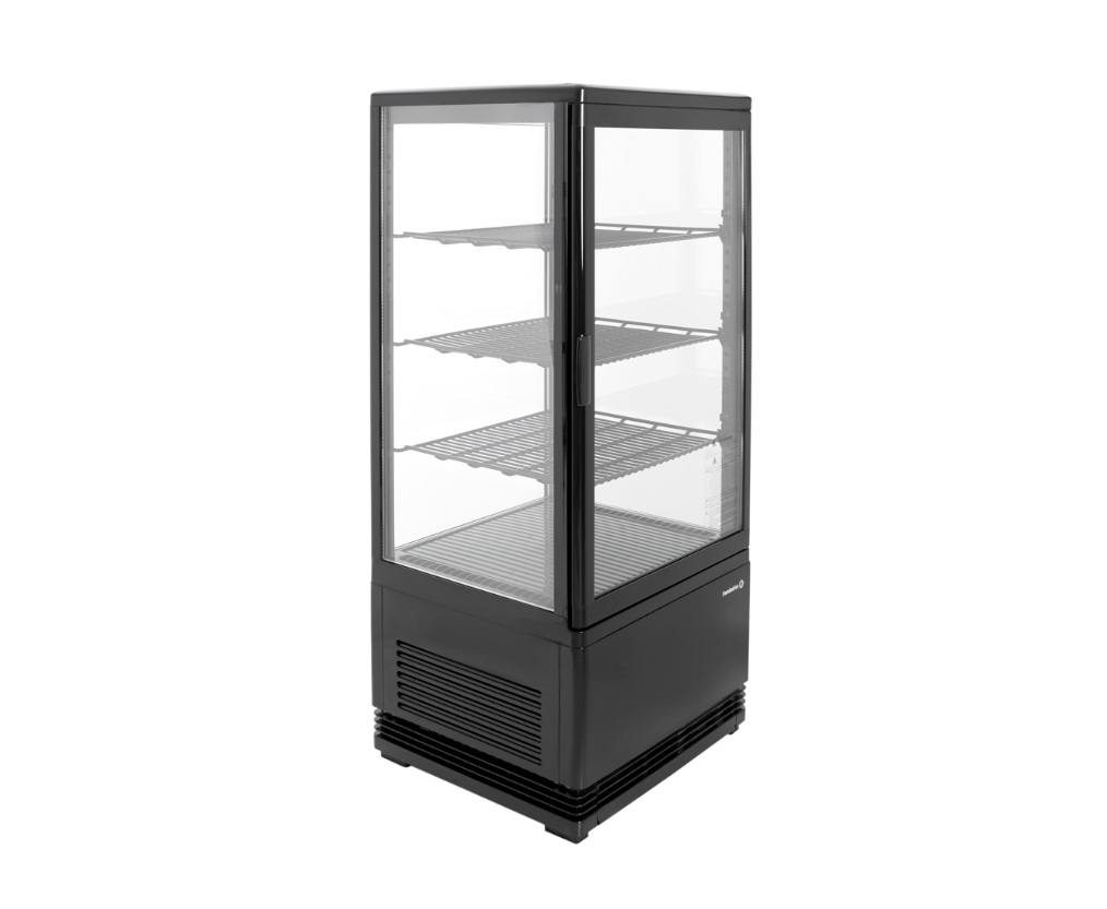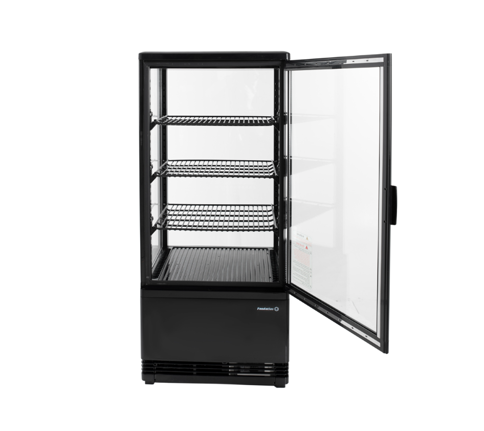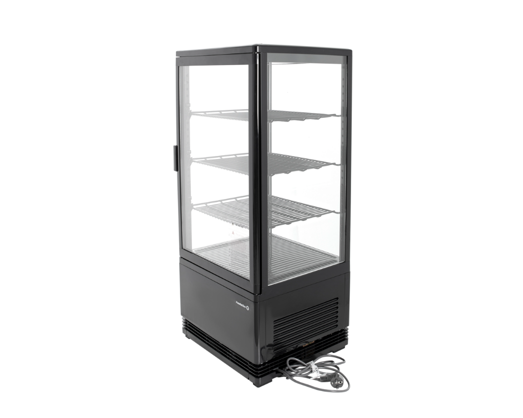 Витрина холодильная RT-78L (черная) FOODATLAS предназначена для демонстрации, охлаждения и кратковременного хранения продуктов и напитков на предприятиях общественного питания и торговли. Витрина оснащена распашной дверцей. Корпус выполнен из окрашенного металла с 4-х сторонним остеклением.