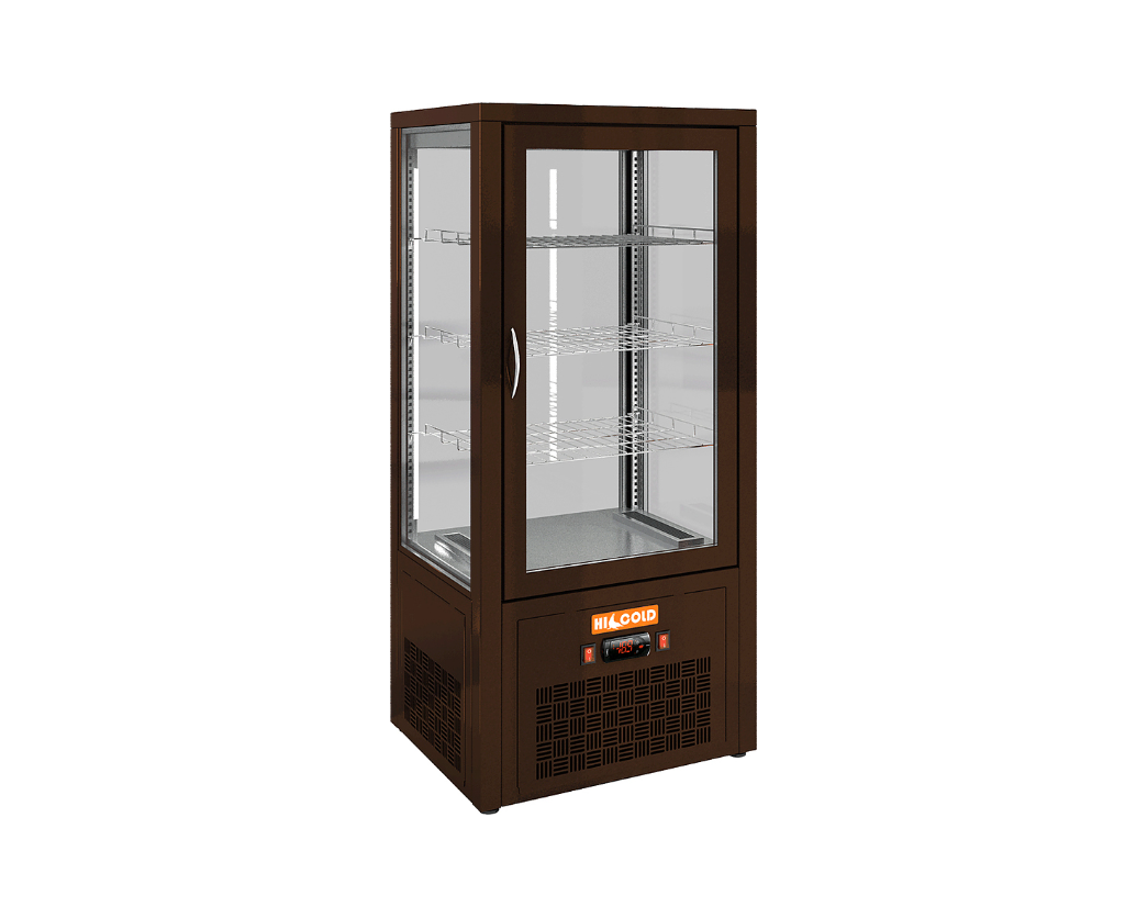 Витрина холодильная VRC T 100 Brown HICOLD используется на предприятиях общественного питания и торговли для демонстрации, охлаждения и кратковременного хранения напитков, салатов, десертов и других готовых блюд и скоропортящихся продуктов. Модель оснащена 3-мя вместительными полками. Корпус выполнен из нержавеющей стали и однокамерного стеклопакета.