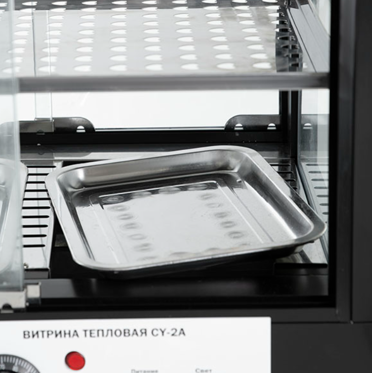 Тепловая витрина Foodatlas CY-2A предназначена для поддержания блюд в горячем состоянии на предприятиях общественного питания и торговли. Витрина оснащена полкой под гастроемкости и полкой-решеткой, 2-мя гастроемкостями и подсветкой. Корпус и внутренняя облицовка выполнены из нержавеющей стали.
