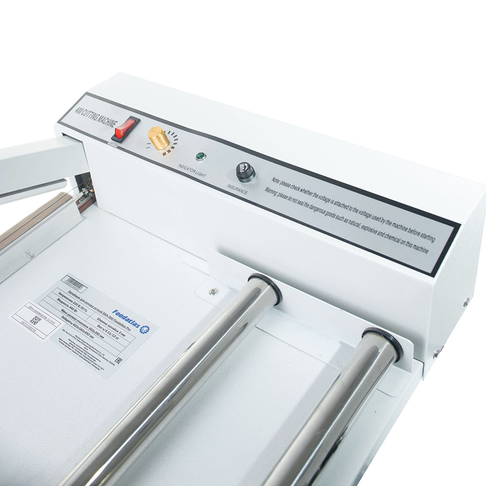 Ручной запайщик для рукава Foodatlas SKA-300 используется на предприятиях общественного питания и торговли для упаковки продуктов питания, напитков, медицинских препаратов, металлоизделий, книг, предметов искусства и другой продукции. Для упаковки используются PVC и POF пленки. Запайщик оснащен индикаторами запайки и питания, нагревательным элементом, таймером и предохранителем. Корпус выполнен из окрашенного металла, трансформатор - из меди, обрезная струна - из никеля, ролик - из нержавеющей стали.
