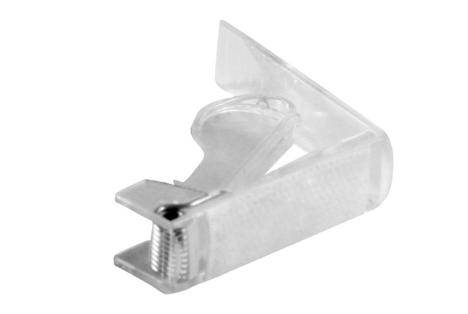 Зажим для скатерти прозрачный с липучкой/пружина MGprof (1738) предназначен для удержания скатерти на обеденном столе. Предотвращает сползание скатерти со стола. Зажим снабжен специальной липучкой, предназначенной для крепления фуршетной юбки. В этом случае зажим надежно крепится к столу, а фуршетная юбка прикрепляется к липучке зажима с помощью заранее пришитой к поясу юбки дополнительной липучки.