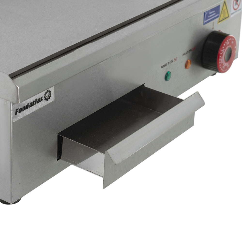 Жарочная поверхность Foodatlas EG-818 предназначена для контактной жарки мяса, птицы, рыбы и овощей на предприятиях общественного питания. Поверхность оснащена жарочной поверхностью с бортиками, регулятором температуры, предохранителем, индикаторами сети и нагрева, жиросборником и 4-мя ножками. Корпус выполнен из нержавеющей стали 430, жарочная поверхность - из стали A3, ножки - из резины.
